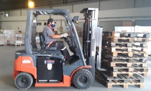 Outro fator que contribui para redução na emissão de CO2 é a utilização de empilhadeiras elétricas (foto) nos processos de armazenagem e carregamento no Centro de distribuição.